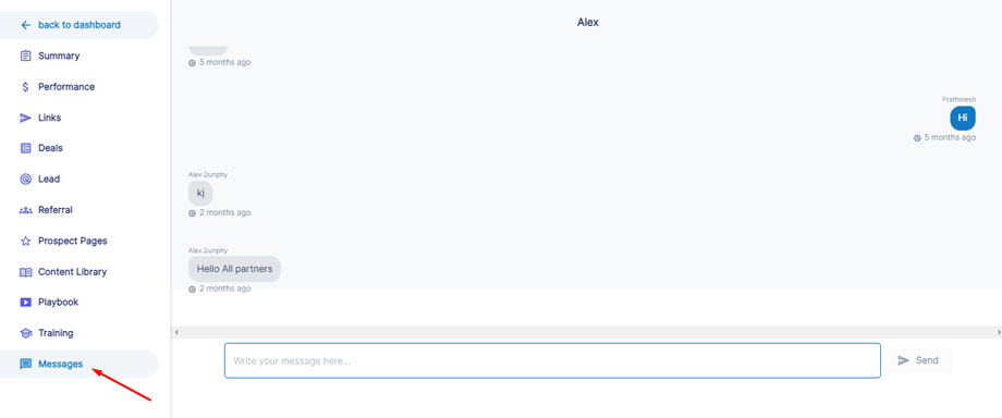 2) In the program dashboard, you can see the message tab at the bottom on left side navigation