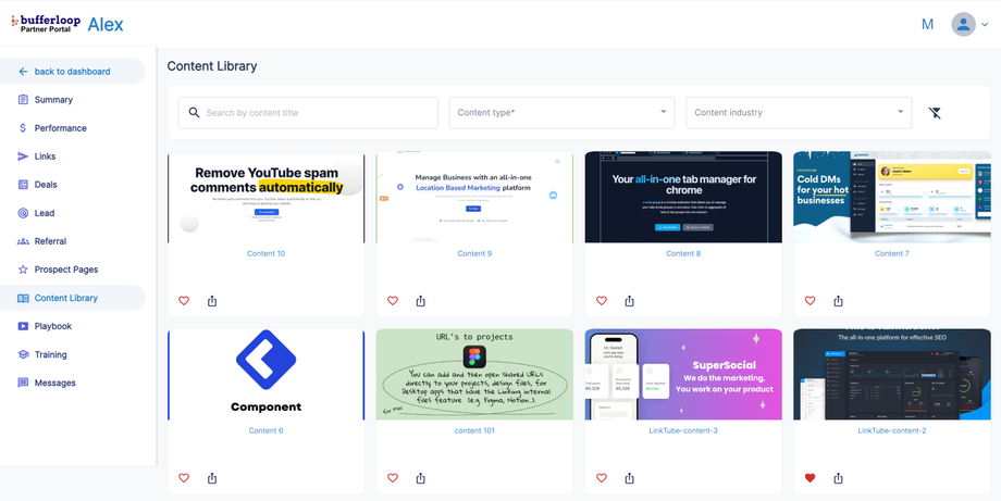 Content library is the resources vendor shares with partner which contains text and images or document files which partner can use to learn about product or promotion purposes.