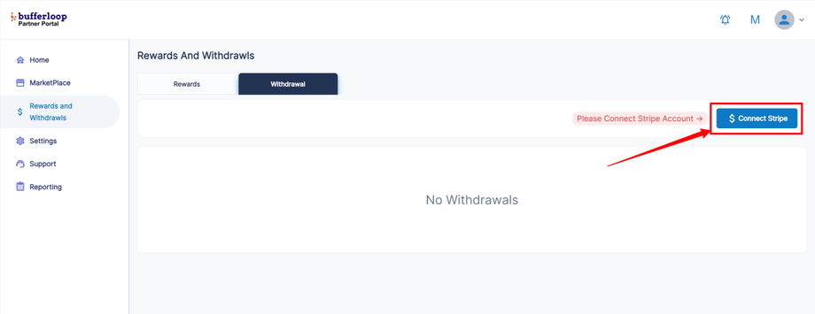 To withdraw money, first thing you have to do is to connect your stripe account.