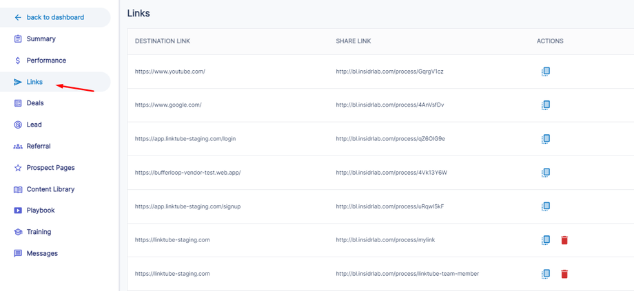 From your dashboard click on program name to open a program dashboard which link you want to share.