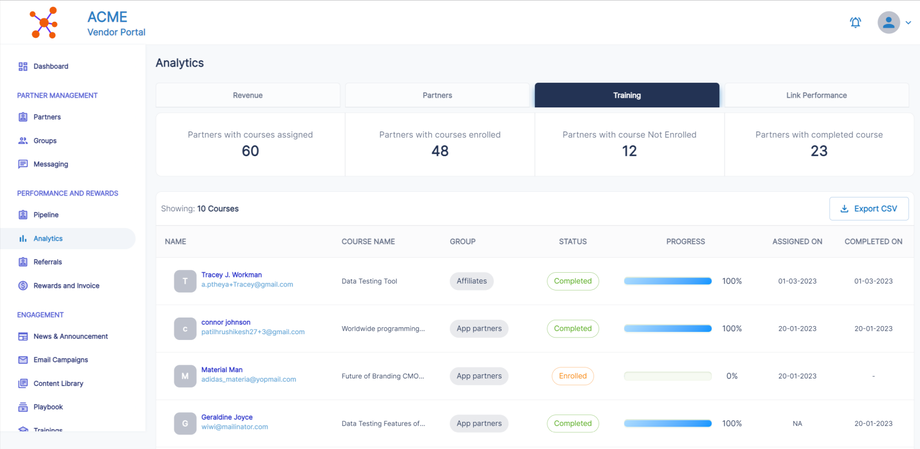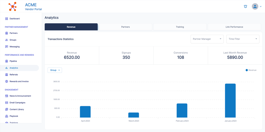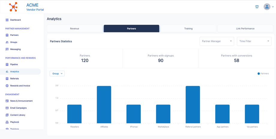 Analytics gives you an overview and provide a set of data to analyse your partner program and progress of partners.