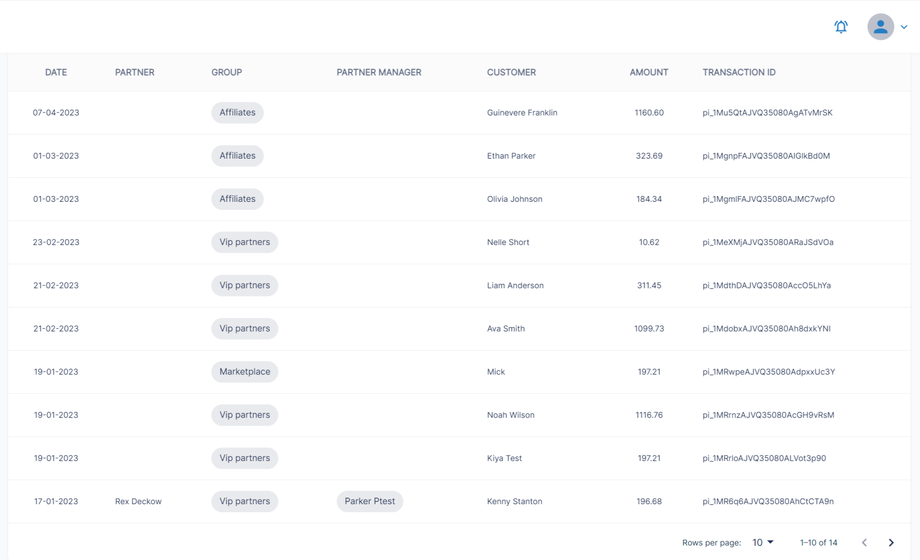 Revenue tab gives you data of all the transaction happens thorugh your partner program and the generated revenue.