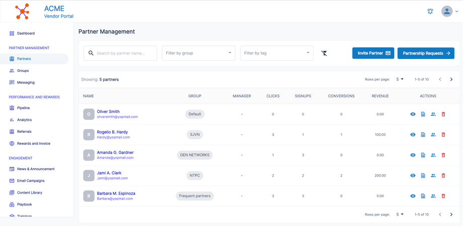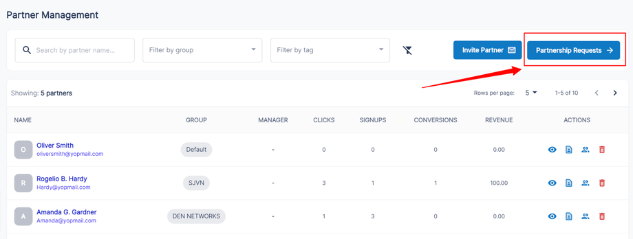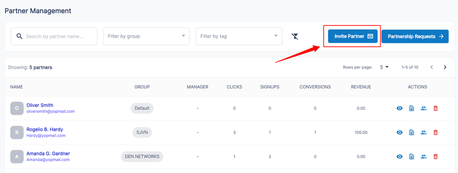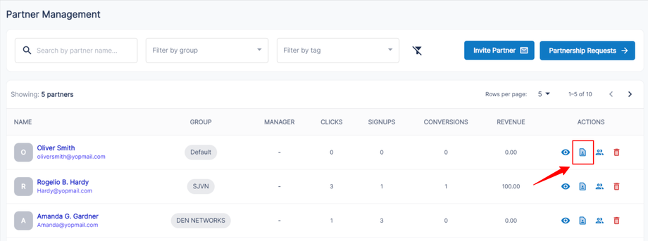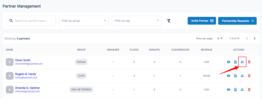 From partner list, click on third icon from the Action column of the table. Check below image.