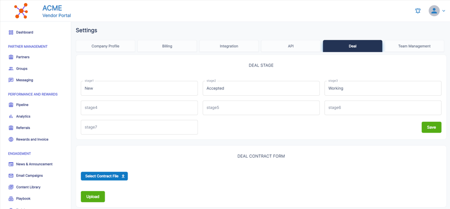 You can add sales media, check the timeline as when he reaches certain stage and engage with partner by creating groups or one to one communication.